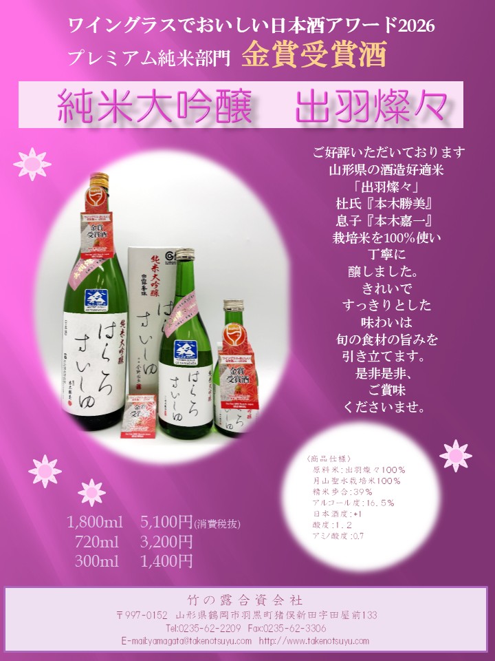 やわらかな香りをまといながら芳醇な旨味が口中にふくらみ充実感たっぷりに癒されてゆきます。さわやかできれいな引きも両立した個性的な酒です。