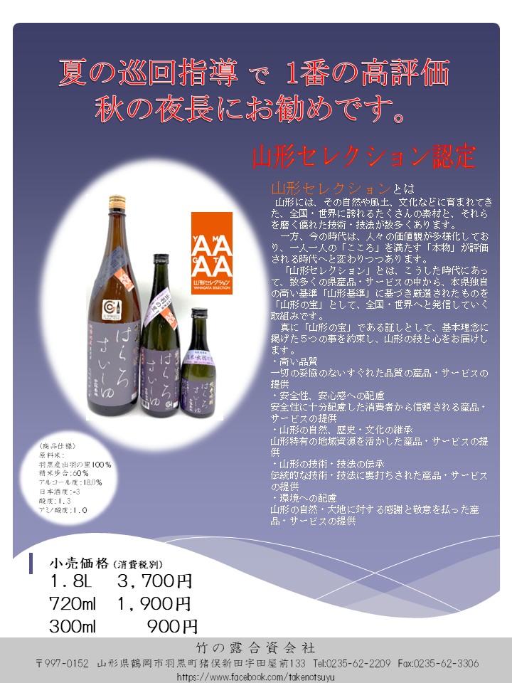 やわらかな香りをまといながら芳醇な旨味が口中にふくらみ充実感たっぷりに癒されてゆきます。さわやかできれいな引きも両立した個性的な酒です。